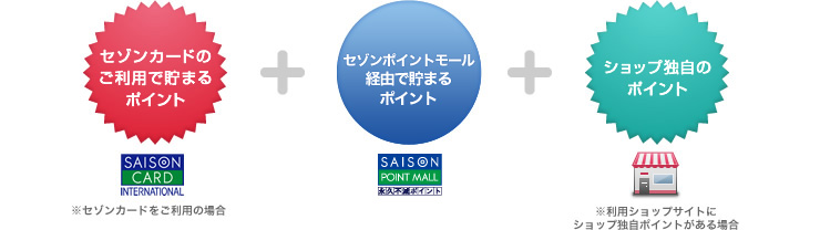 ※一部ショップサイトでは、セゾンポイントモールを経由すると、ショップ独自ポイントか付与されない場合がございます。